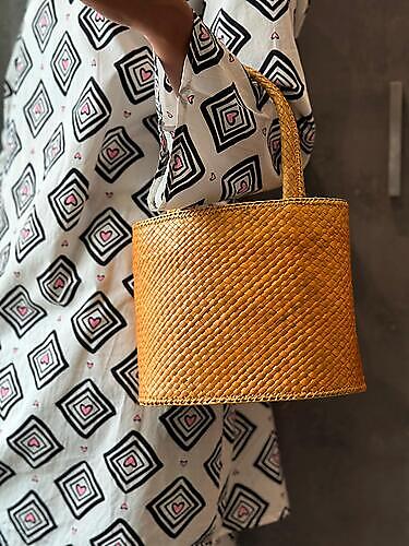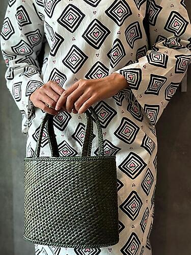 Available in 3 sizes (model wearing size S), with fabric lining & drawstring closure